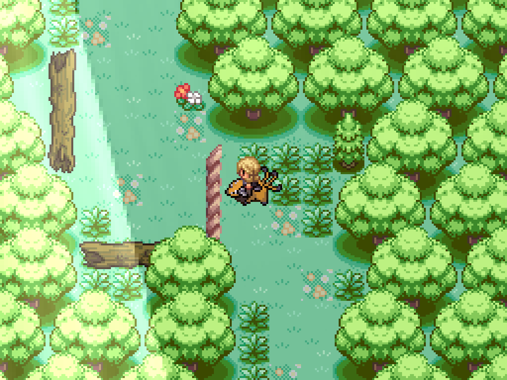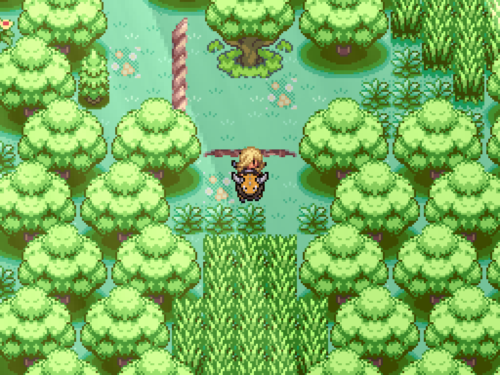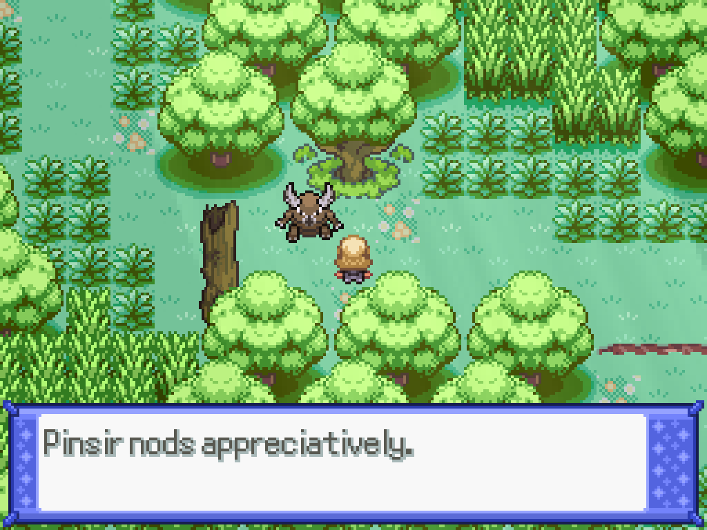 Slather honey on this tree to spawn a bug pair. Kill the Heracross to have Pinsir destroy the log; this does open up a route for a Tauros but it doesn't lead anywhere just yet. Instead, step on the flowers to reset Route 1.